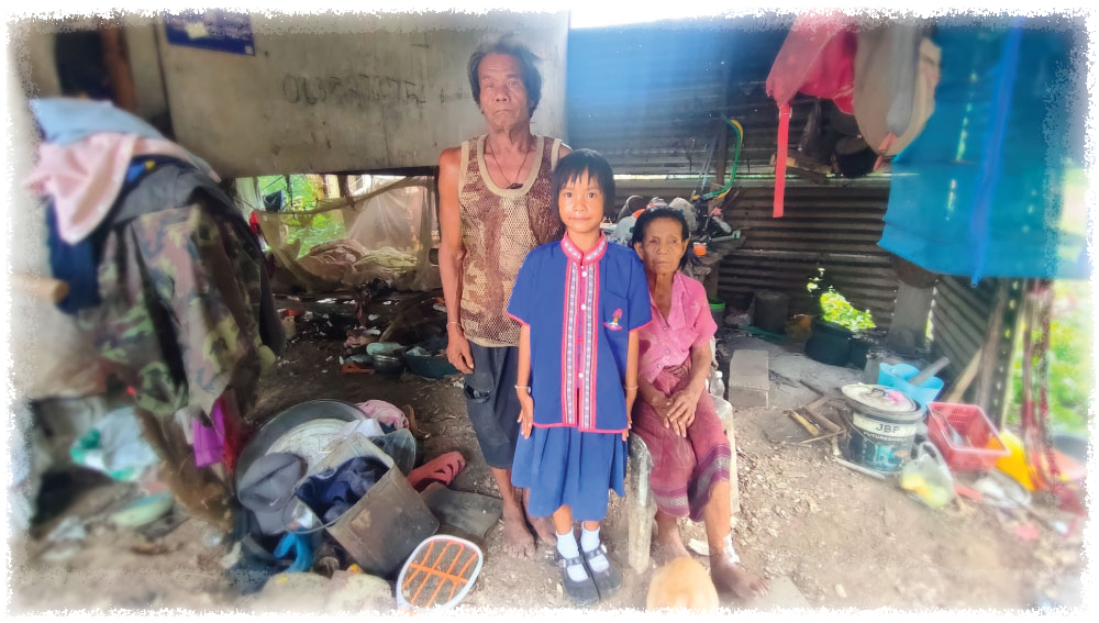 “พอคิดถึงหลานทีไรก็บอกตัวเองว่า หยุดไม่ได้ ๆ ต้องทำงาน เพื่อให้มีเงินซื้ออาหารเลี้ยงปากเลี้ยงท้อง ยิ่งอาการทรุดบ่อยรายได้ก็ยิ่งน้อย บางวันไม่มีเงินซื้อข้าว สงสารหลานมากถ้ามีโอกาสผมอยากให้เขาได้เรียนสูง ๆ ให้เขามีอนาคตดี ๆ เหมือนคนอื่น ตอนนี้ทางเดียวที่ผมทำได้ คือพยายามไม่ให้เขาขาดเรียน” ลุงพูดด้วยน้ำเสียงระทมทุกข์ใบหน้าหม่นหมอง