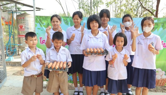 ไก่ไข่อารมณ์ดีที่โรงเรียนบ้านสระไม้แดง จ.ฉะเชิงเทรา