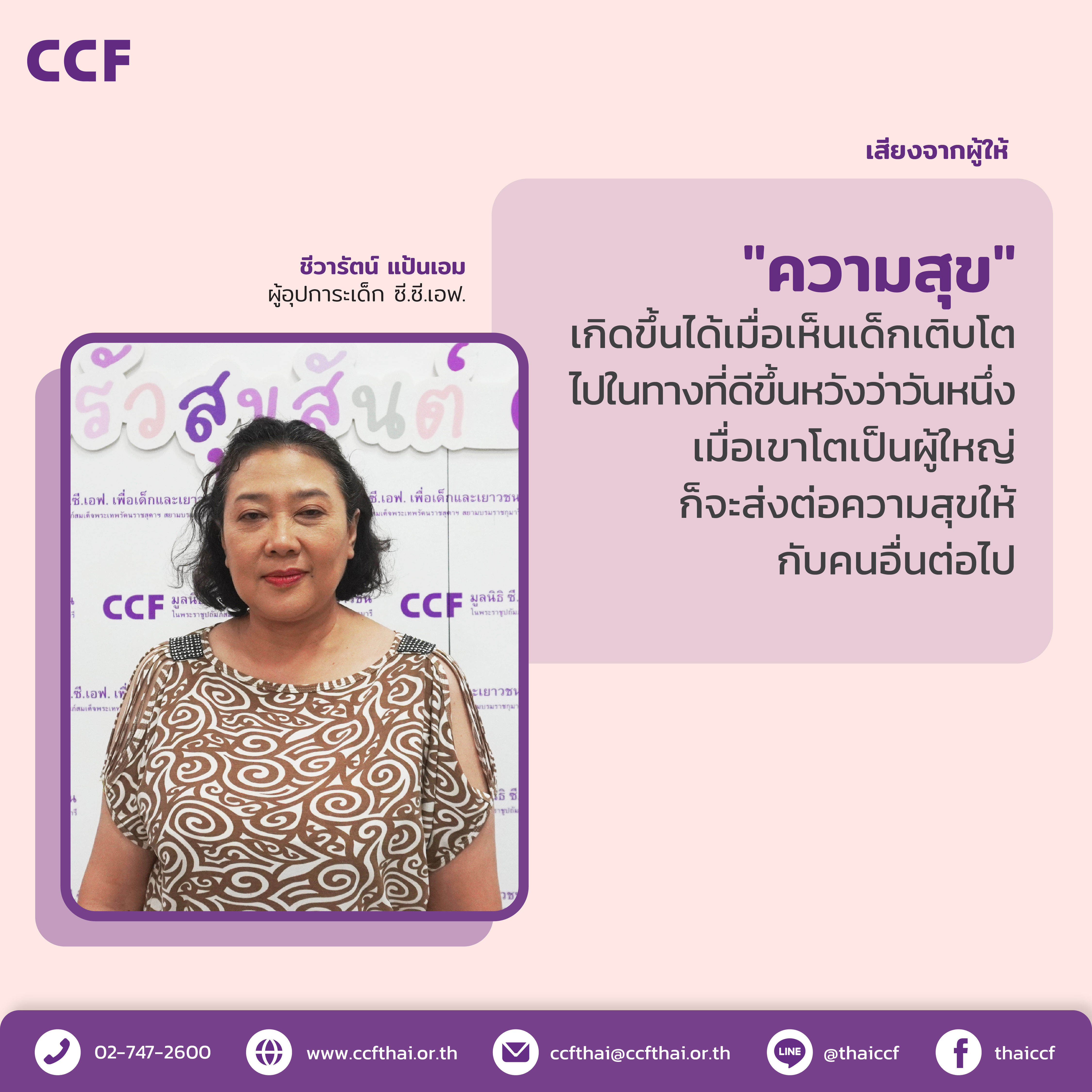 คุณชีวารัตน์ แป้นเอม ผู้อุปการะเด็ก ซี.ซี.เอฟ.