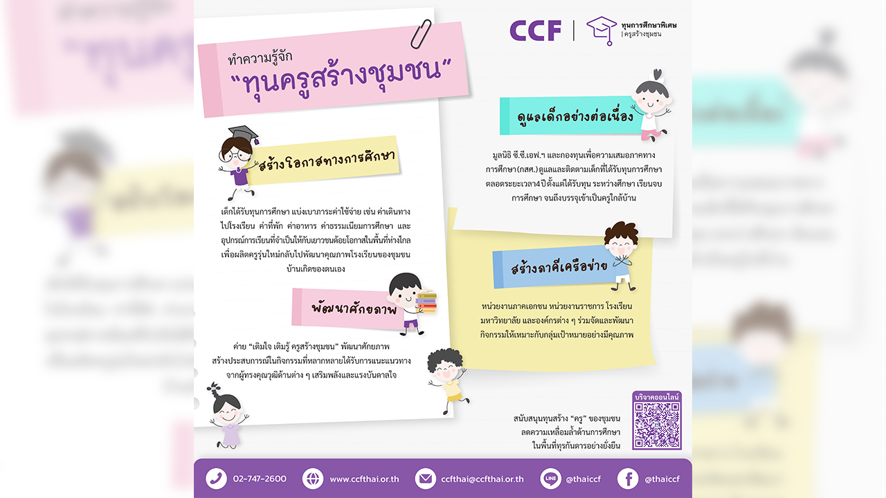 นโยบายการคุ้มครองข้อมูลส่วนบุคคล Copyright 2018 - Community Children Foundation (CCF) Under the Royal Patronage of HRH Princess Maha Chakri Sirindhorn