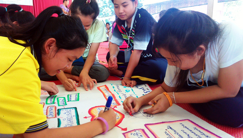 แกนนำเยาวชนช่วยกันออกแบบ/วาดสื่อรณรงค์